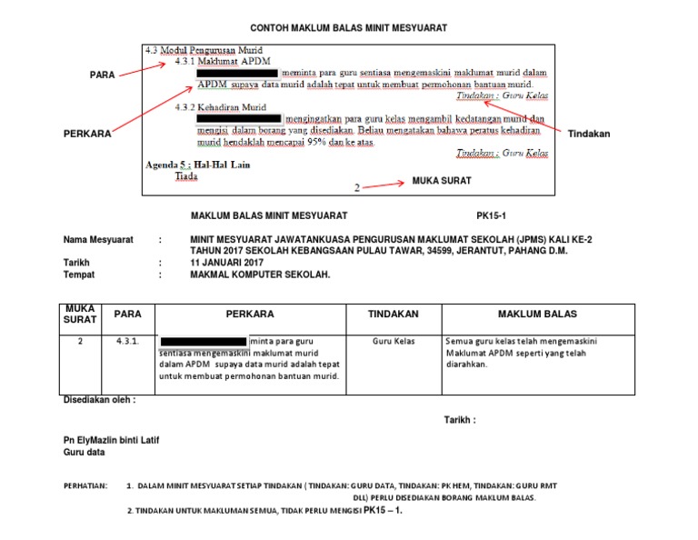 Doc Contoh Maklum Balas Minit Mesyuarat Noryn Samin Academia Edu