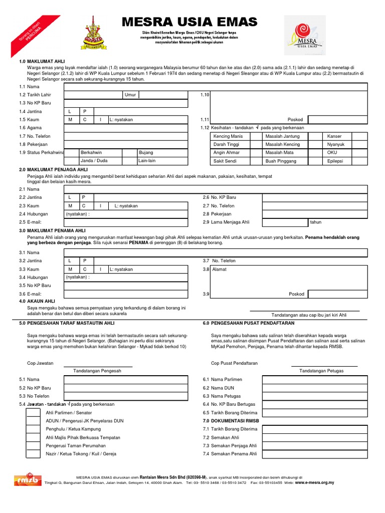 Warga Emas Borang Permohonan Skim Mesra Usia Emas