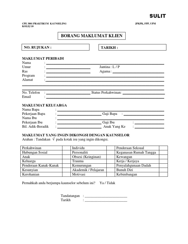 Borang Maklumat Peribadi Kakitangan Jabatan Sumber Manusia