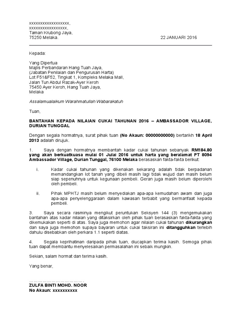 Contoh Surat Rasmi Bantahan Surat Rasmi H
