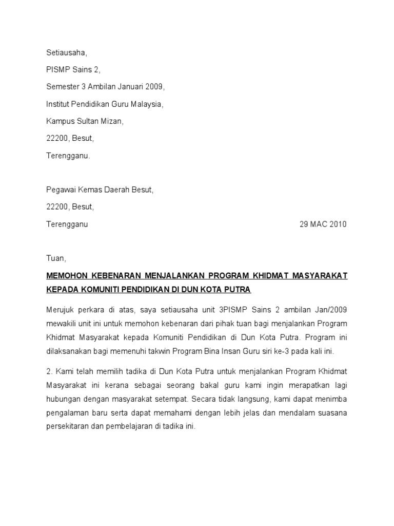 Contoh Surat Rasmi Permohonan Membuka Gerai Rasmi B