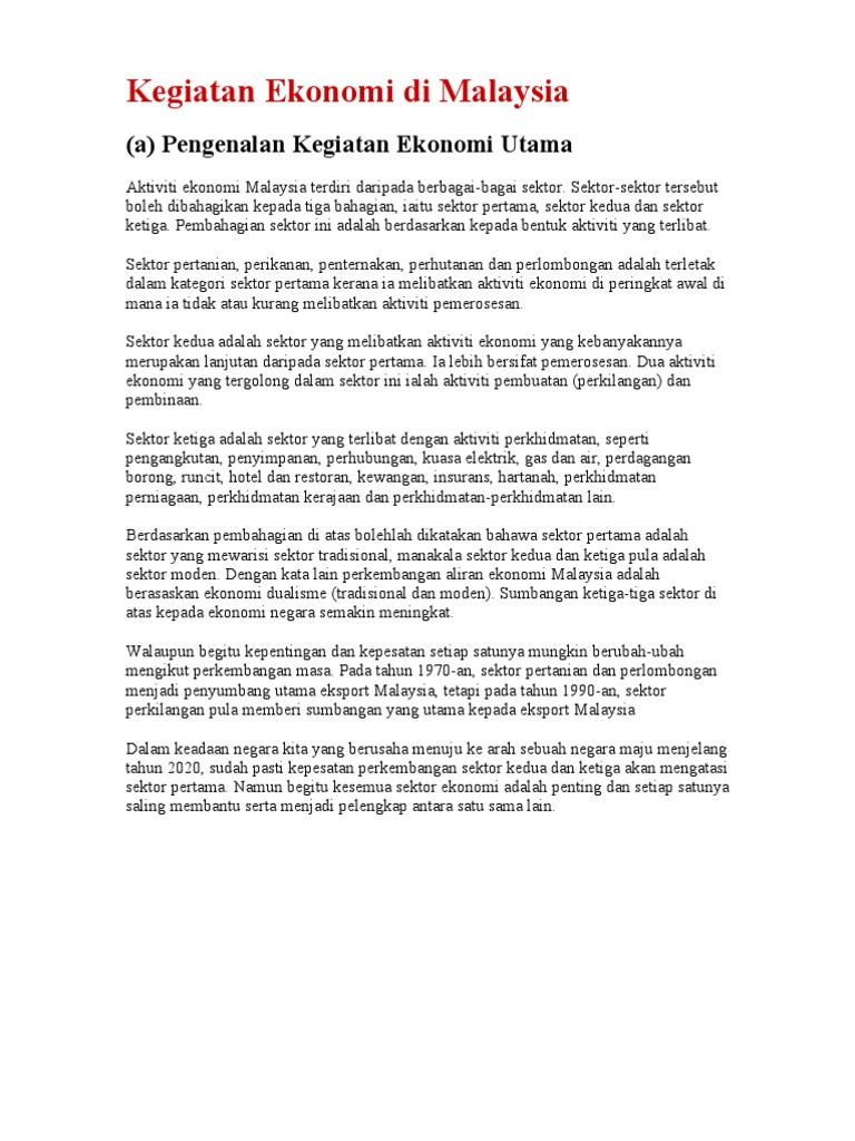 Latar Belakang Kegiatan Ekonomi Di Malaysia