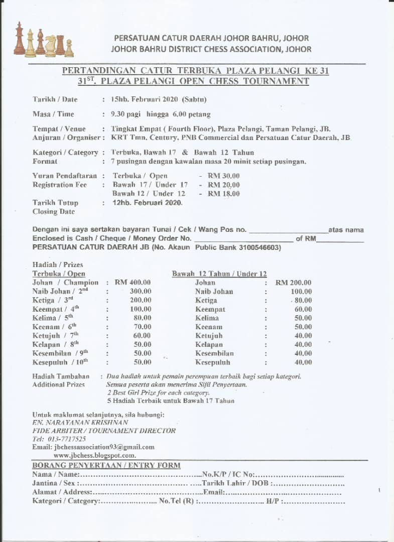 Johor Bahru Chess Association 28th Plaza Pelangi Open Chess Tournament
