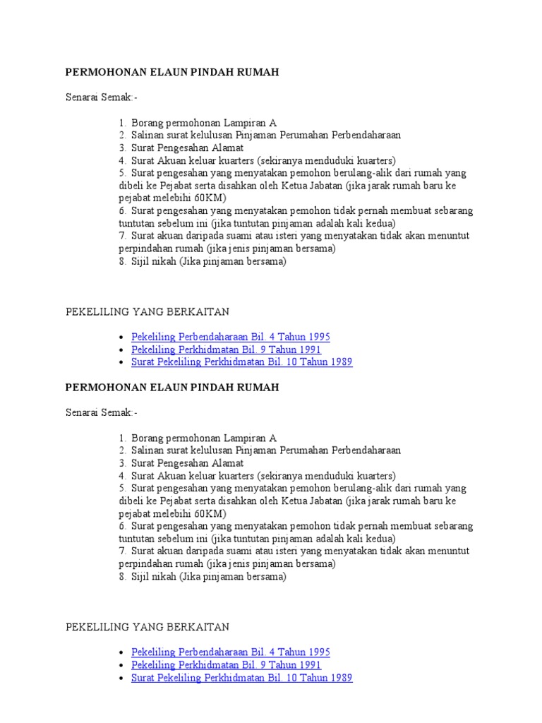 Pekeliling Perbendaharaan Bil 4 Tahun 1995 Elaun Pindah Rumah